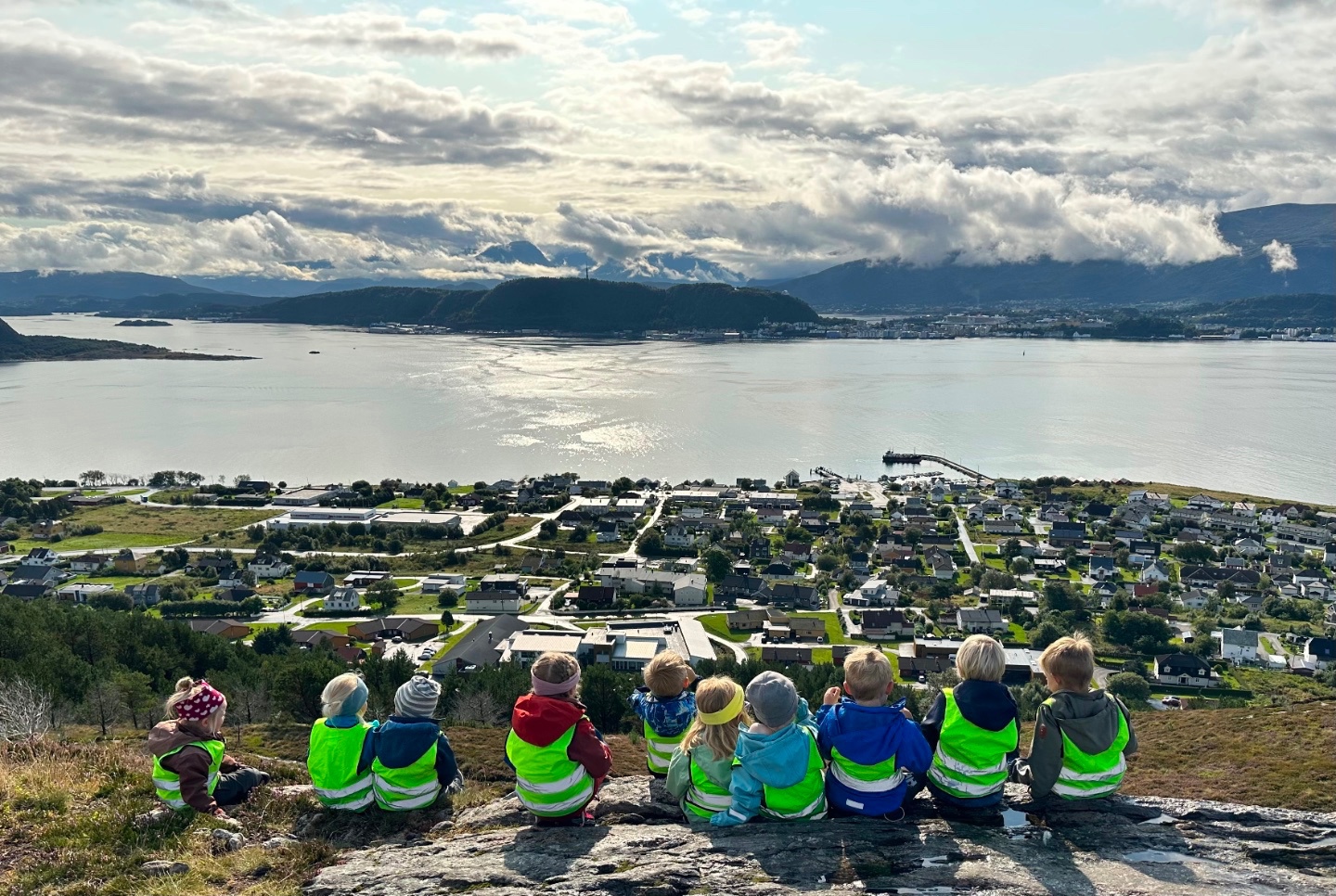 Med ryggsekk fylt av mat og drikke, tok vi turen frå Myra Barnehage og videre opp til skogen. Målet var å gå heilt til topps på Fløyna. Det klarte dei. For ein gjeng.